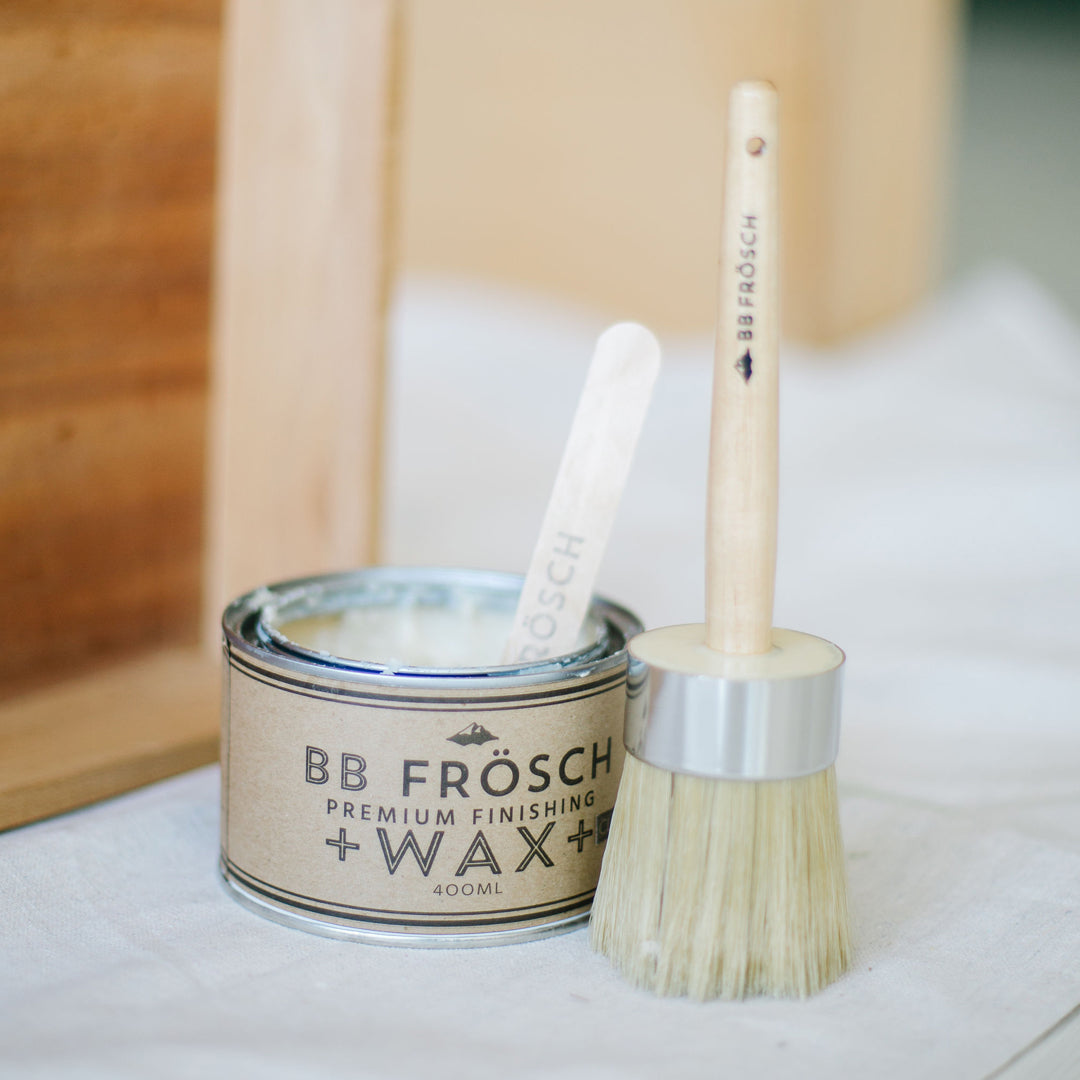 - BB Frösch Premium Finishing Wax is easy to apply. Unlike products that require multiple steps with lengthy dry times, waxing a typical piece like a dresser can be done, start to finish and fully dried, in about 20 minutes.