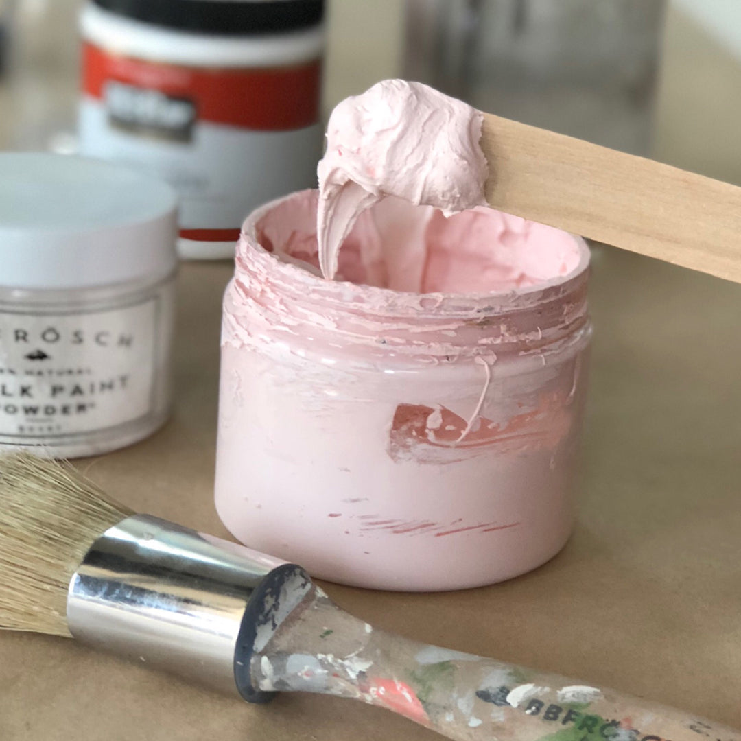 One of the best things about BB Frösch is that it can be used with ANY BRAND of flat finish latex or acrylic paint. We recommend flat finish. If your paint has primer in it, that’s okay—you will still get all the great properties of chalk/mineral paint, it may just thicken a little more when stored.